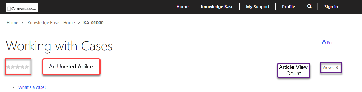 The Knowledge Base is a collection of knowledge articles created by you to assist your customers. They can be made visible to everyone, regardless if they have an account with you or not. A robust Knowledge Base is the first step in deflecting support cases. The articles are organized into Categories created in SuccessStack and will serve as an index for navigation. Knowledge Articles have built in analytics that let you know how many times an article has been viewed, if feedback has been submitted, its rating, and if it has deflected and cases. Ratings can be open to all users, regardless if they are authenticated or not. Commenting on articles can be limited to authenticated users, all users, or no one at all.