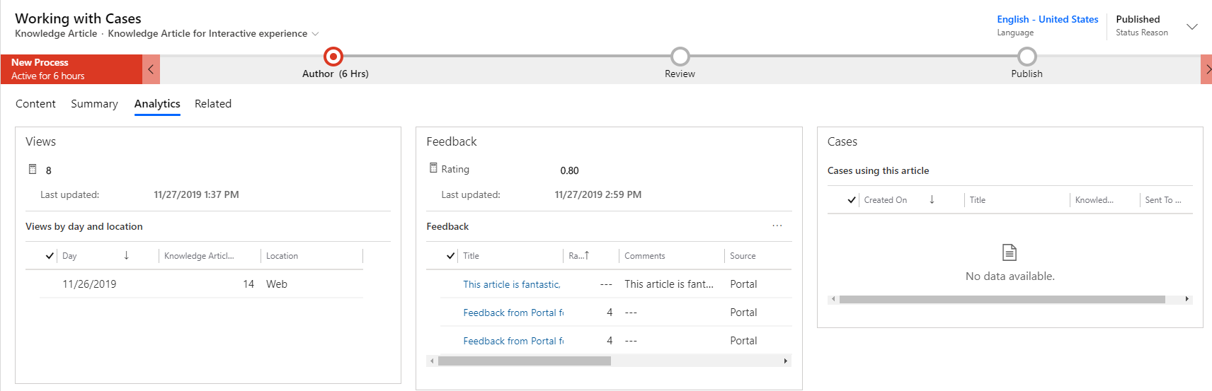 These tools can be used by Knowledge Managers to gauge if an article is being used, needs to be updated, or rewritten entirely.